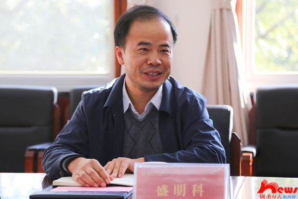 盛明科对我校的热情接待表示感谢,并介绍了湘潭大学的有关情况。他希望通过此次交流,学习我校在学科建设、成果奖励与人才引进、“双一流”建设等方面的优秀经验,将学习成果转化为具体举措,助推学校发展,进一步加强与我校的沟通合作,携手互助、共同进步。