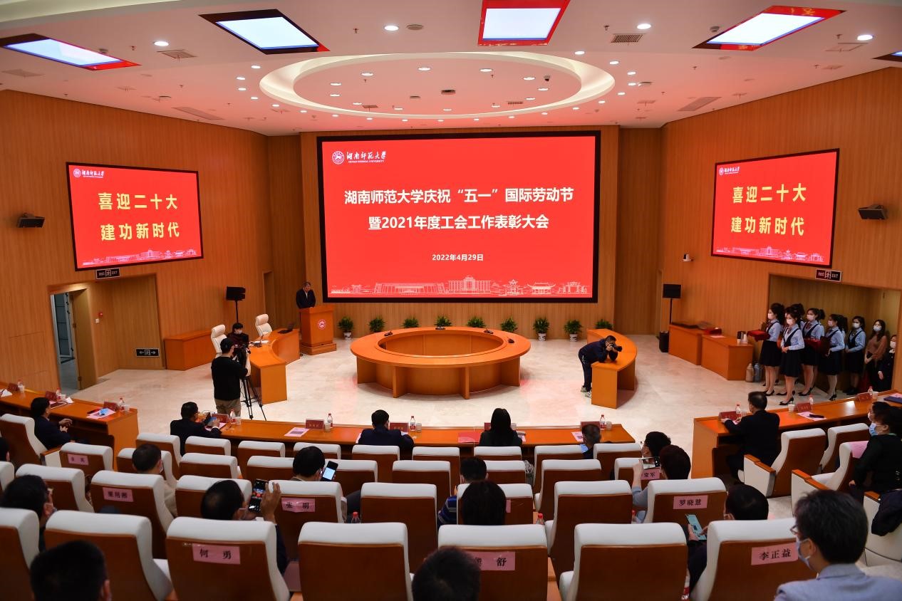 周俊武传达了习近平总书记给首届大国工匠创新交流大会的贺信精神。向全校师生传达了学校荣获全国总工会颁发的“全国五一劳动奖状”的喜讯。他对先进单位及先进个人为我校作出的贡献表示感谢,并希望全体教职工向先进典型学习,大力弘扬劳模精神、劳动精神、工匠精神,为全力建设“五个师大”、为湖南“三高四新”战略和学校“双一流”建设目标奋力拼搏,以昂扬的斗志和崭新的姿态迎接党的二十大胜利召开。