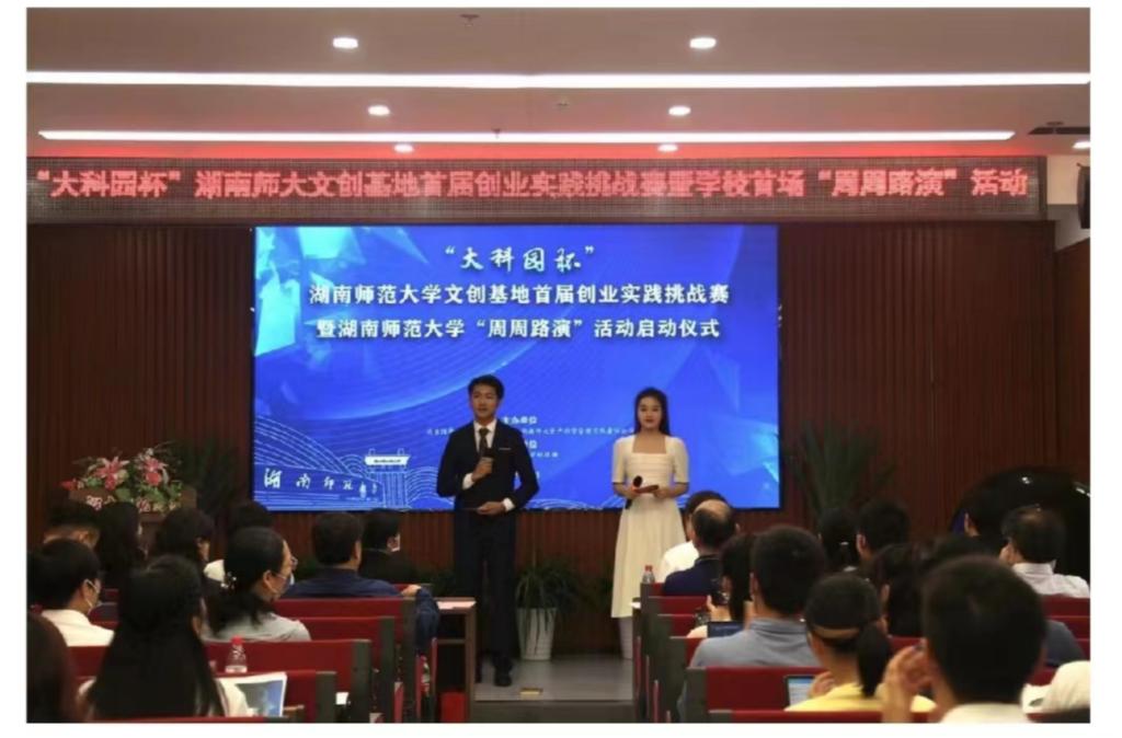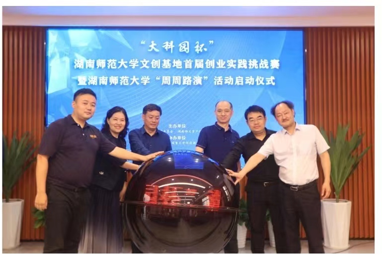 (记者 李欣茹 陈靓)5月26日,“大科园杯”湖南师范大学文创基地首届创业实践挑战赛暨首场“周周路演”活动在桃子湖文创园举行,副校长王辉、杨震出席。