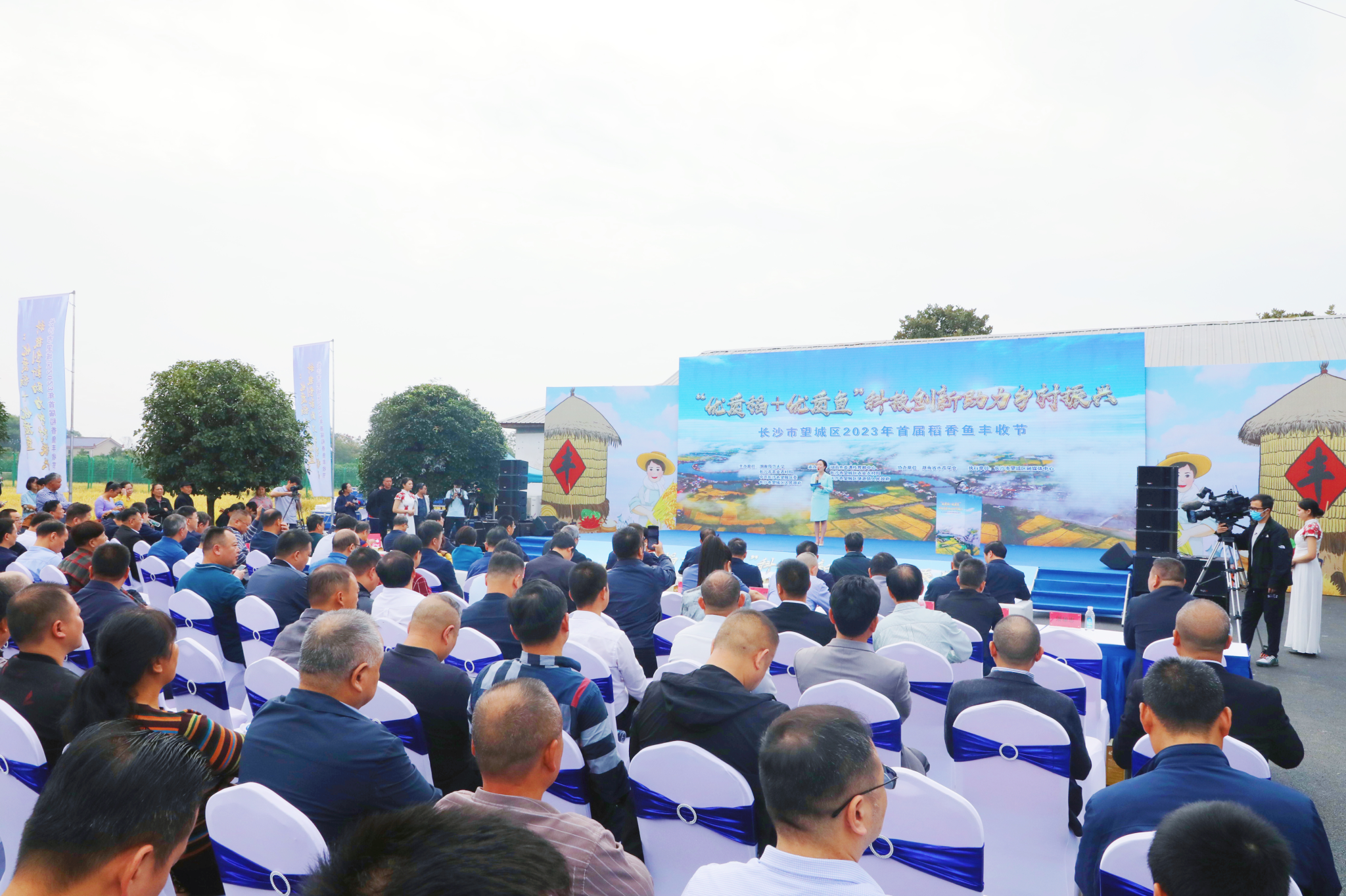 (供稿 生科院)10月14日上午,我校联合望城区人民政府共同举办的以“优质稻+优质鱼”科技创新助力乡村振兴为主题的“望城区2023年首届稻香鱼丰收节”在湖南鱼类遗传育种中心启幕。湖南省人大常委会副主任陈飞,农业农村部渔业渔政管理局副局长江开勇,湖南省人民政府副秘书长孟祥定,湖南省政协常委、港澳台侨外事委员会副主任肖祥清,中国工程院院士邹学校、刘少军、柏连阳、吴义强,我校副校长刘怀德等出席活动。
