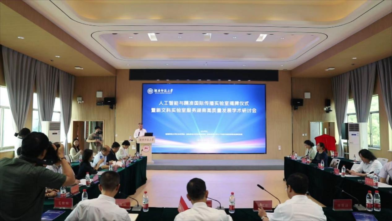 会上,胡代松、蒋洪新以及湖南省社科联科研组织处处长李邦铭,我校人工智能与精准国际传播实验室主任高协平共同为实验室揭牌。