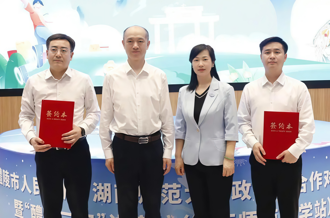 杨震向醴陵市委、市政府,株洲文旅广体局及各位领导嘉宾对学校事业发展的支持表示感谢。他介绍了学校办学情况,并强调高校与地方是命运共同体,要发挥我校在人才、科研、智力等方面的突出优势,助力地方经济社会发展。杨震表示,湖南师大与醴陵已在医疗、教育、产学研等领域取得丰硕合作成果,此次签约是双方深化文旅融合的创新实践,学校将充分发挥科技、人才优势,助力醴陵经济建设,奋力实现“三高四新”美好蓝图。