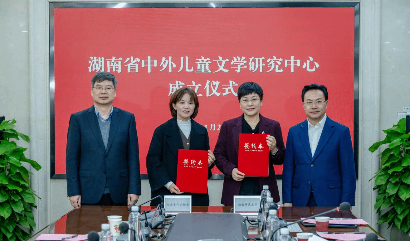 (通讯员 付怡冰 宣鸣宇)11月24日上午,湖南省中外儿童文学研究中心成立仪式在我校中和楼举行。湖南省作家协会党组书记胡革平,我校校长、中国工程院院士刘仲华,湖南省作家协会主席、湖南省中外儿童文学研究中心主任、我校文学院汤素兰教授出席仪式。仪式由我校语言与文化研究院院长邓颖玲教授主持。