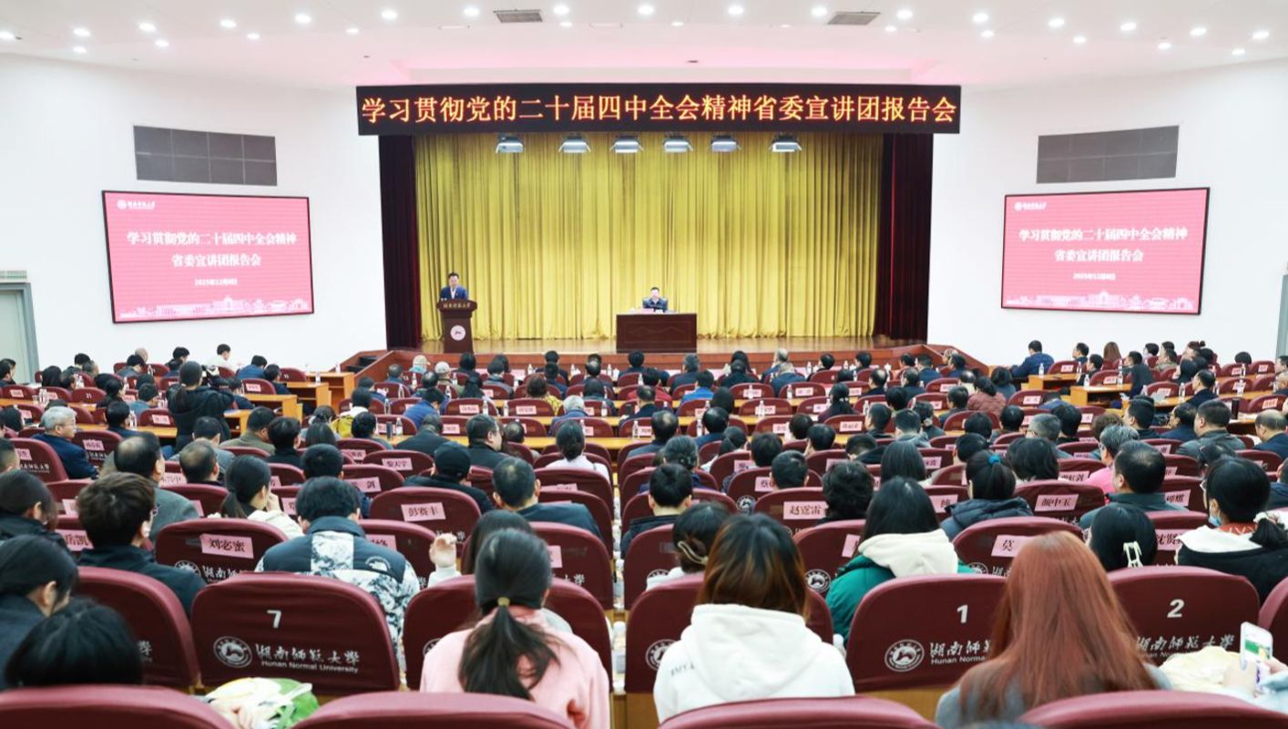 12月8日上午,学习贯彻党的二十届四中全会精神省委宣讲团报告会在湖南师范大学举行,省委宣讲团成员、省委组织部副部长何俊峰作宣讲报告。我校党委副书记、校长刘仲华主持会议。