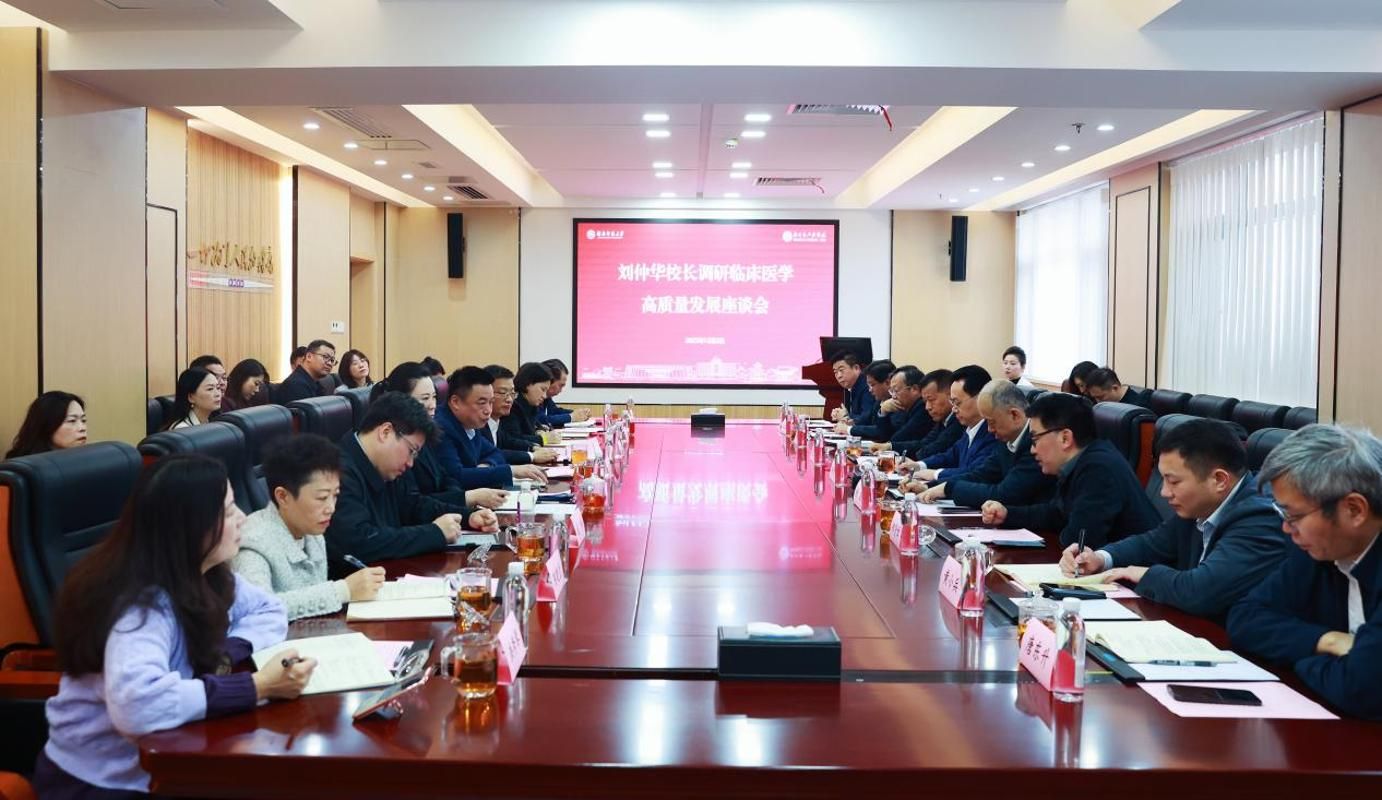 在交流座谈环节,双方围绕如何进一步提升临床医学教育质量进行深入研讨。大家一致认为,要深化医学教育与科研合作,通过临床经验丰富的教师参与教学、加强院校科研对接,特别是临床医学与生物化学等多学科交叉合作。要积极推动重点实验室建设,加强人员交流,着力构建新型附属医院管理模式。