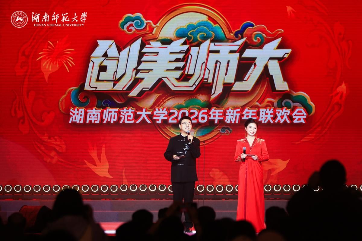 (记者 马铁泉 龚怡)12月26日下午,我校2026年新年联欢会在江湾体育馆举行。省人大常委会原副主任、省教育基金会理事长王柯敏,省妇联党组书记、主席杨兰英,省科协党组书记、常务副主席王瑰曙,省教育工会主席邓曼,省人力资源和社会保障厅副厅长李日新,省公共资源交易中心副主任刘定文,省林业局副局长胡峰,湖南农业大学原党委书记陈弘,我校原校长刘湘溶,原党委书记、欧洲科学院院士蒋洪新,湖南工商大学党委书记廖志坤,衡阳师范学院党委书记刘子兰,长沙工业学院党委副书记杨念,省教育工会副主席朱冠星,湘江新区相关街道办事处负责人,校友企业负责人,我校全体在家校领导,老领导、老同志代表,区级以上党代表、人大代表、政协委员、省政府参事和党外代表人士,相关职能部门、附属单位负责人及师生代表3000余人共同观看了联欢会。