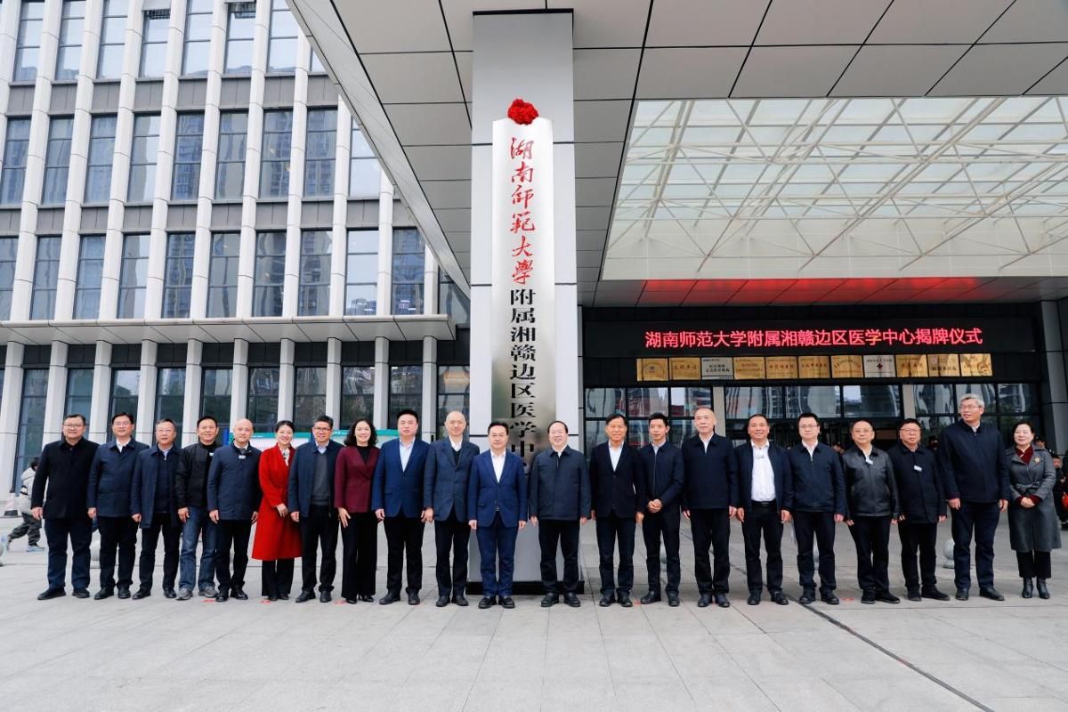 领导嘉宾共同为“湖南师范大学附属湘赣边区医学中心”揭牌。