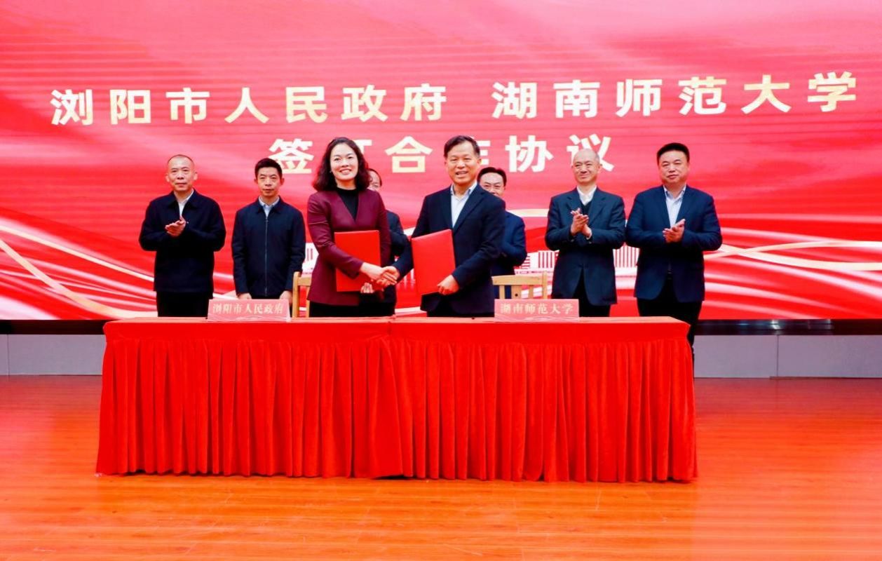 刘来宏、祝益民代表双方签订校地合作协议。浏阳市人民医院是集临床、教学、科研于一体的三级甲等综合医院,是湘赣边区域医疗中心。根据校地合作协议,我校与浏阳市将发挥各自优势,把浏阳市人民医院合作共建为湖南师范大学直属附属医院,建立湘赣边区医学中心,在人才培养、科学研究、平台建设、成果转化等方面深度合作,推动医教研协同发展。