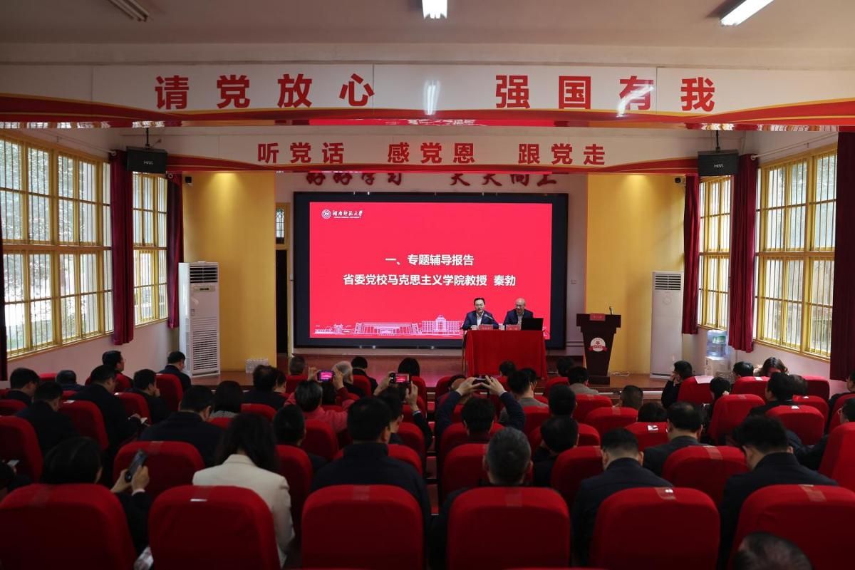 校党委副书记、校长刘仲华主持理论学习研讨会。中共湖南省委党校(湖南行政学院)秦勃教授以《习近平总书记关于树立和践行正确政绩观的重要论述》为题作专题辅导报告,从重大意义、丰富内容、实践要求等三个方面,对树立和践行正确政绩观作了全面阐释,深刻解答了“政绩为谁而树、树什么样的政绩、靠什么树政绩”的根本问题。