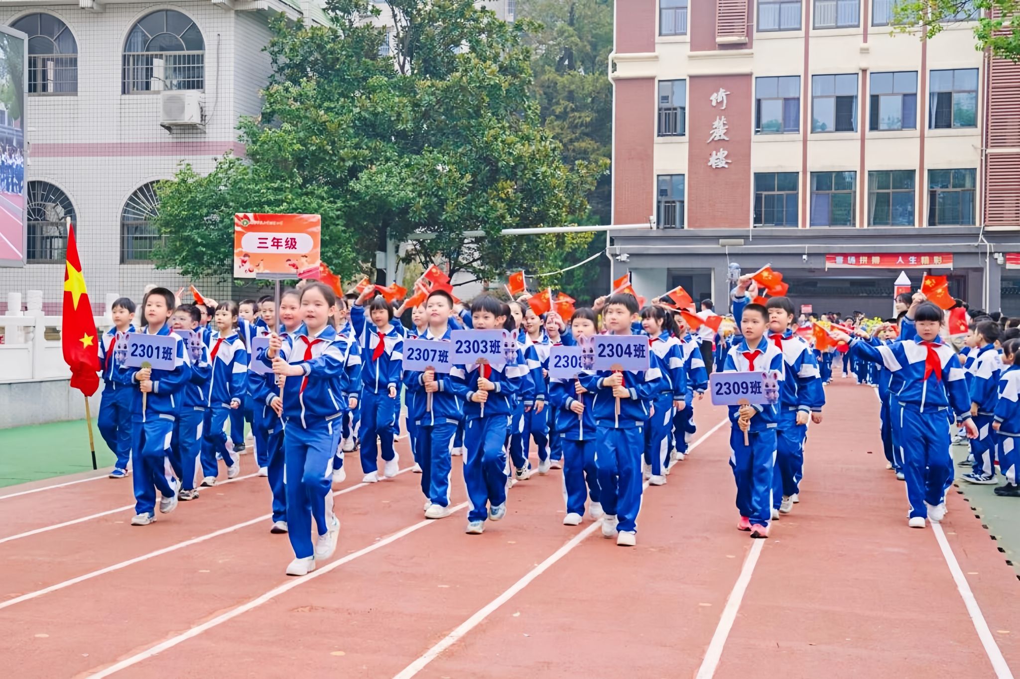 各年级方阵依次入场。同学们精神饱满、步伐整齐,展现出各年级的风采风貌与课程特色。