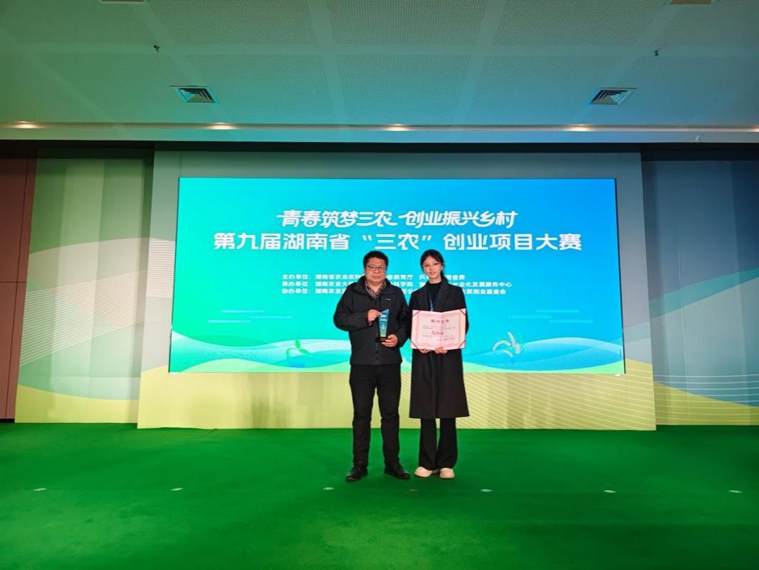 (通讯员 熊永通)3月21日上午,由湖南省农业农村厅、教育厅、共青团湖南省委主办的第九届湖南省“三农”创业项目大赛成功举行,由医学部大学生创新创业中心主任陶晓军教授指导的2025级药学班本科生曾梓芩负责的《岩草生金——点绿成金的医药农业实践》项目获得省三等奖。