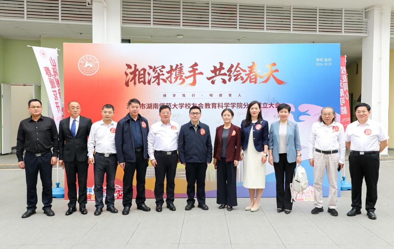 (通讯员 谭梦)3月29日上午,我校深圳校友会教育科学学院分会成立大会暨基础教育论坛在湖南师范大学附属深圳盐田山海学校举行。会议选举产生校友分会第一届理事会及组织机构,搭建起基础教育领域交流平台。湖南省驻深圳办事处一级巡视员李永东,我校副校长郑贤章,深圳市盐田区教育局副局长叶菲,我校深圳校友会会长田地、执行会长兼秘书长邹寿长等领导嘉宾出席大会,教育科学学院领导班子成员、教师代表及在深校友150余人参会。