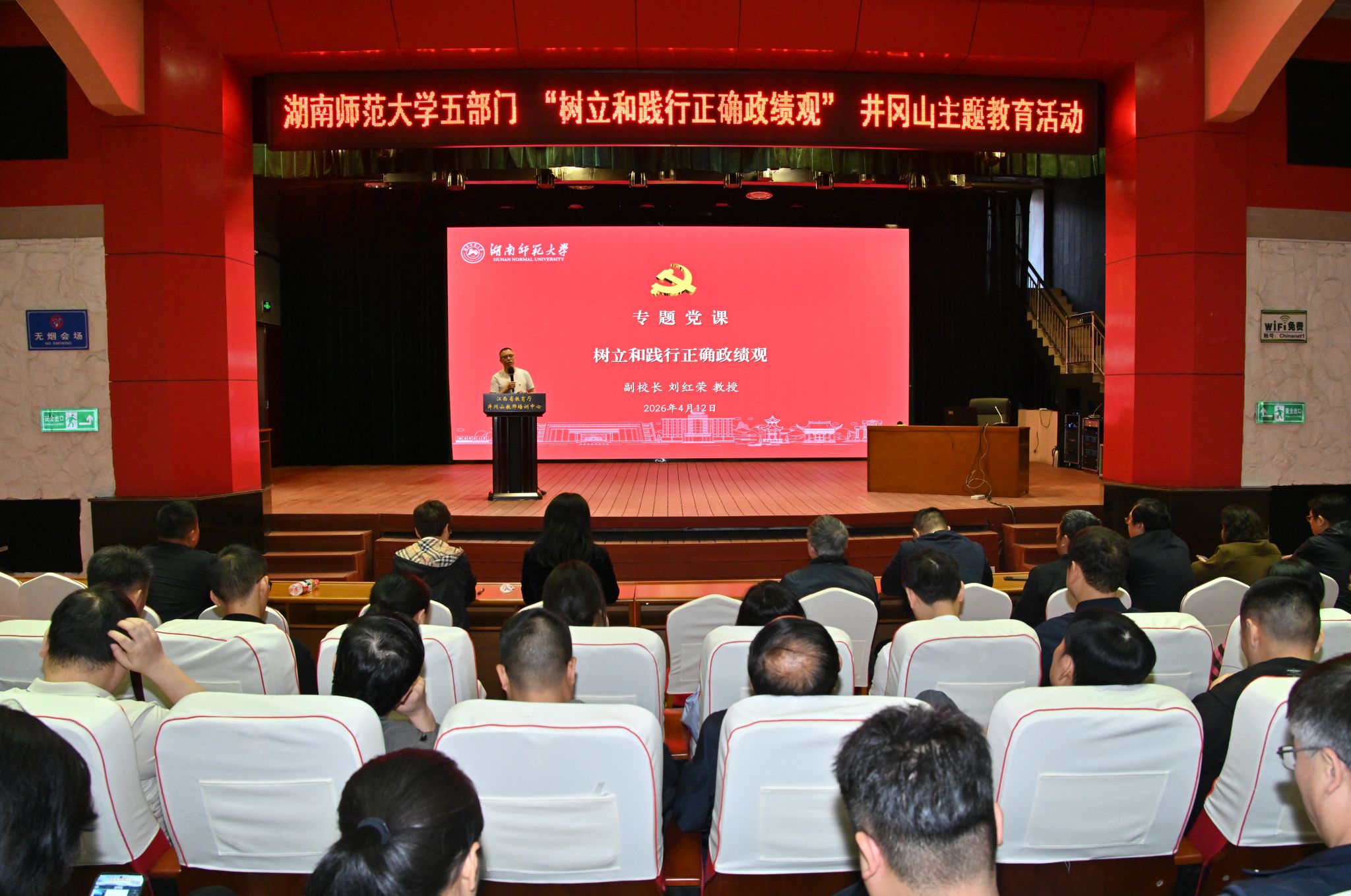 在教育部师德师风建设基地,井冈山干部学院陈胜华教授作《弘扬井冈山精神,树立和践行正确政绩观》辅导报告,系统阐释新时代党员干部政绩观的内涵与实践路径。物理与电子科学学院党委书记罗嵘主持专题学习。