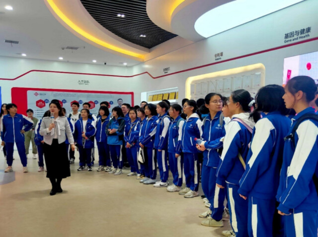 参观中,圣湘科技还特别安排张可亚和任小梅两位博士给学生们上了别开生面的一课。任小梅博士给大家解密了基因的奥秘、基因检测在疾病预防和治疗方面的重要作用;张可亚恰巧是湖南师大附中的校友,毕业后考入北京大学就读,他关于北大生活及生涯规划的分享激励了同学们好好学习的热情。