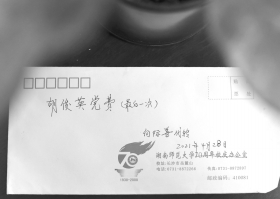 为了完成妻子的愿望,向际善来到湖南师大附中,把装有1000元现金的信封交到妻子领导手中。