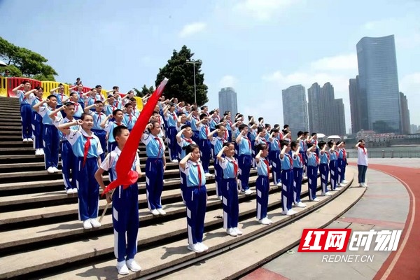 红网时刻长沙5月10日讯(通讯员 禹莹)5月9日上午,湖南师大附小的师生代表走近橘子洲头,学习红色文化 ,传承红色基因。百名师生齐诵经典《七律长征》,铿锵的旋律,致敬人类历史的伟大壮举;一首《没有共产党就没有新中国》唱出了大家的心声,手中飘扬的党旗,辉映着在场所有党员和小学生的拳拳赤子之心。