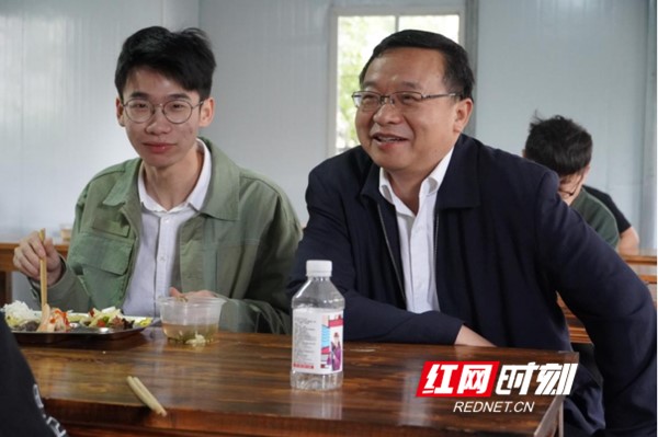 功夫不负有心人。一个星期后的一个中午,咸嘉湖学生公寓研究生餐馆如期开张了,刘怀德带队深入学生中调研就餐及住宿情况,与他们促膝谈心,嘘寒问暖,并了解学生们其他需要解决的愁盼事,一一记录在册。他鼓励学生们做新时代的好青年,多向学校提出宝贵意见。