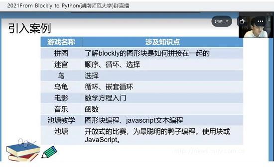 “名师引领,砥砺前行。湖南师范大学瞿绍军老师全程为我们直播上课,每天直播时间长达7个多小时。”长沙县丁家小学王梨梅老师感叹道,“瞿老师讲课思路清晰,教态亲切自然,随时随地与学员们进行互动交流。授课内容也由易到难,先通过游戏过关体验,让我们熟悉程序的基本结构,再完美地从Blockly可视化编程过渡到Python代码编程。一步步地带领我们在Blockly中进行模块的拖拽,再教我们在Python编辑器中进行代码编写,我这种从来没接触过Blockly和Python的小白也能跟上瞿老师的节奏,还能按时完成瞿老师每天布置的难度适宜的作业。瞿老师的课堂让我重拾了大学上课的感觉,每天都收获满满,感谢瞿老师和谷歌公司给我们带来了一次最新技术的洗礼,我将会把本次培训所学知识巩固好并运用到以后的教学中去,带领学生尽情地玩转Blockly和Python,为初高中和大学的编程学习打下良好的基础。”