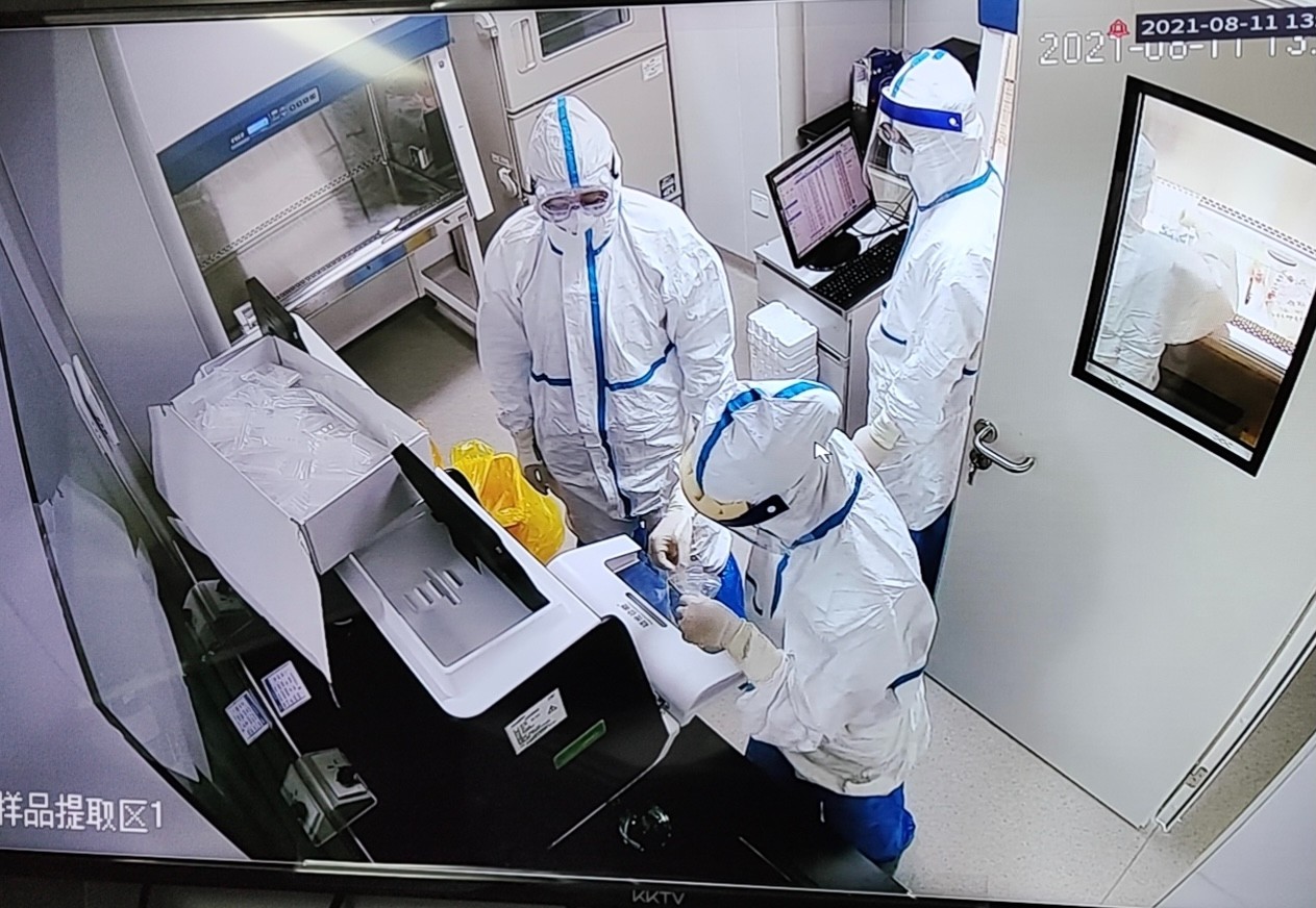 罗静(右一)在提取间提取核酸。