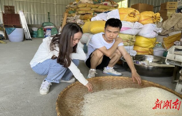 ▲实践团成员体验甜酒制作之选米流程。肖敬怡/摄