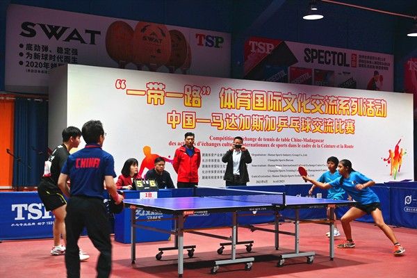 红网时刻新闻4月8日讯(记者 周雨墨)为深入推进“一带一路”体育国际文化交流系列活动,展示乒乓球魅力,4月8日,中国·马达加斯加乒乓球交流赛在长沙市体育训练竞赛管理中心乒乓球馆举行。比赛邀请了马达加斯加国家队和长郡中学、湖南师大附中的23名运动员、教练员参赛。本次交流赛设混合团体和男子女子单打三个组别,比赛采用决赛五局三胜、其余为三局两胜规则进行。