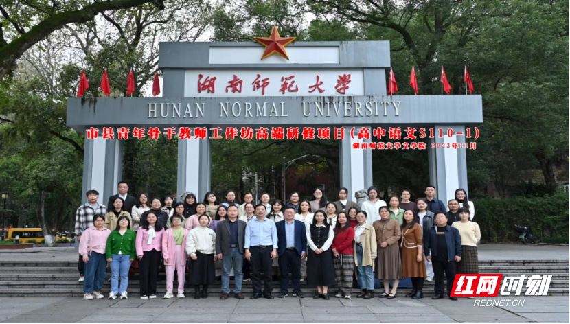 红网时刻常德11月11日讯(通讯员 裴以杰)11月8日上午,来自湖南省各市区县的40名青年骨干教师齐聚岳麓山下、湘水之滨的湖南师范大学文学院,参加2023年“国培计划”市县青年骨干教师工作坊高端研修项目-高中语文(S110-1),共享学习盛宴。开班典礼在湖南师范大学文学院大楼附楼二楼2-1举行,湖南师范大学文学院副院长周凯兴,文学院成教办主任兼主持人张德强,文学院副教授兼项目教学班主任周敏,项目首席专家裴以杰及相关部门负责人出席开班典礼。