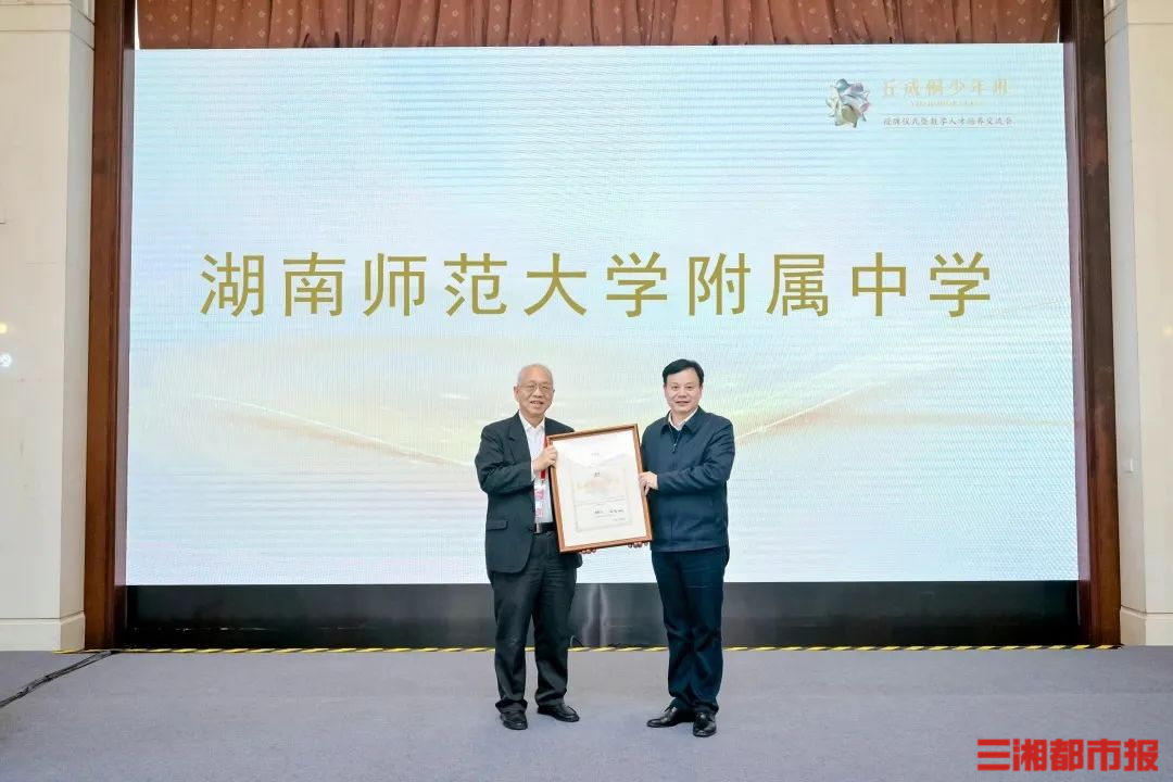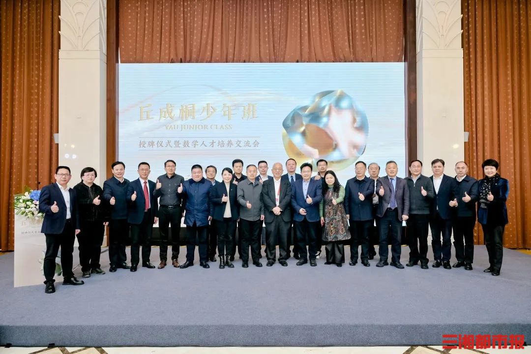 三湘都市报·新湖南客户端1月4日讯(全媒体记者 杨斯涵 黄京)培养对数学有天赋的小学五六年级学生,为国家输送数学学科拔尖创新后备人才……1月3日,“丘成桐少年班授牌仪式暨数学人才培养交流会”举行,湖南师大附中校长谢永红以及全国40余所知名中学的书记、校长参加会议。会上,国际著名数学家丘成桐向湖南师大附中等21所学校颁发了授权设立“丘成桐少年班”牌匾。