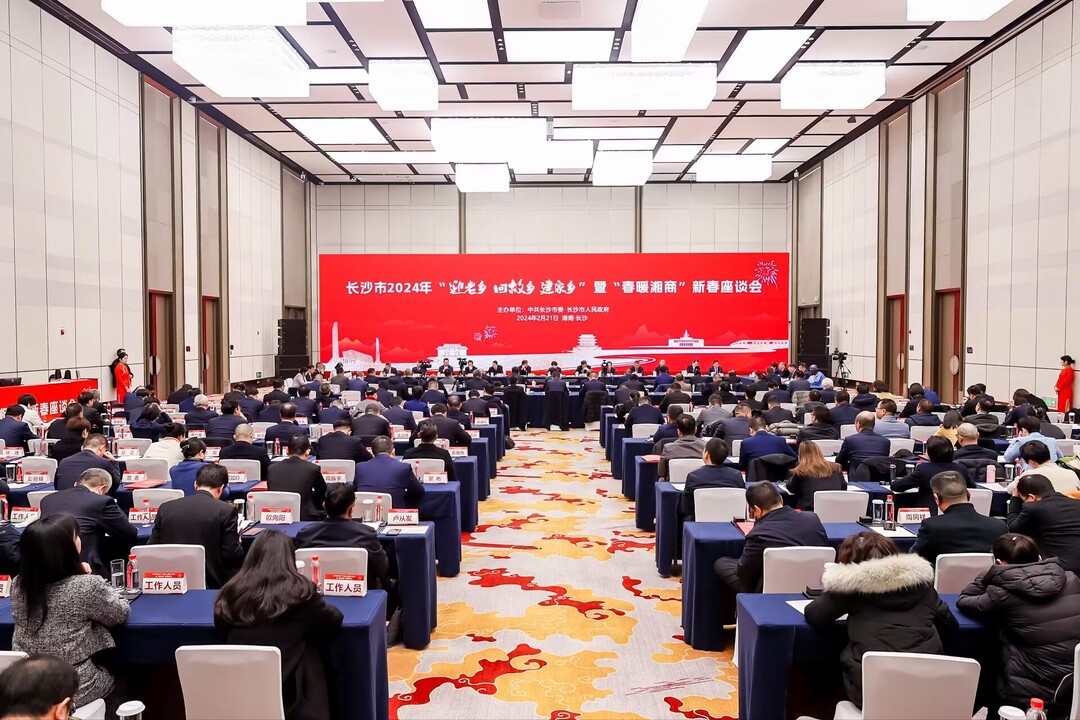 2月21日上午,长沙市2024年“迎老乡 回故乡 建家乡”暨“春暖湘商”新春座谈会举行。