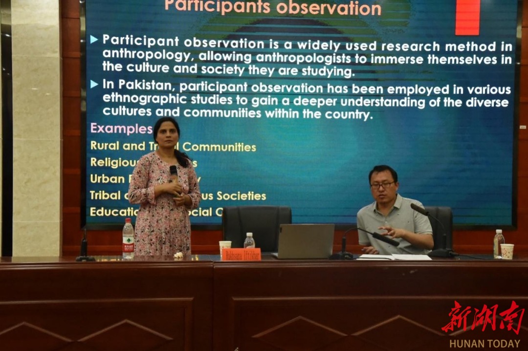 湖南日报·新湖南客户端5月28日讯(通讯员 郭文智)近日,巴基斯坦国立旁遮普大学巴基斯坦研究中心主任Rukhsana Iftikhar(卢克萨娜)教授应湖南师范大学公共管理学院社会学系邀请,在博后楼四楼学术报告厅开展“巴基斯坦人类学的田野方法”专题讲座。此次讲座由湖南师范大学民族学与人类学研究中心主任谭必友教授主持。