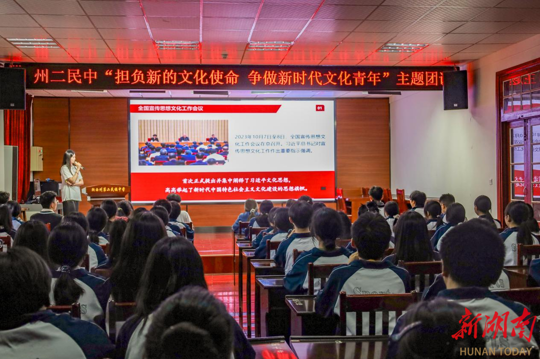 新湖南客户端6月1日讯(记者 莫成 通讯员 邓郭欢)5月30日,一场由湖南师范大学研究生支教团成员何巧玲、向子康主讲的团课,在湘西土家族苗族自治州第二民族中学开展。此次团课以“担负新的文化使命,争做新时代文化青年”为主题,吸引100多名师生热情参与,用青春之声激荡青春正能量。