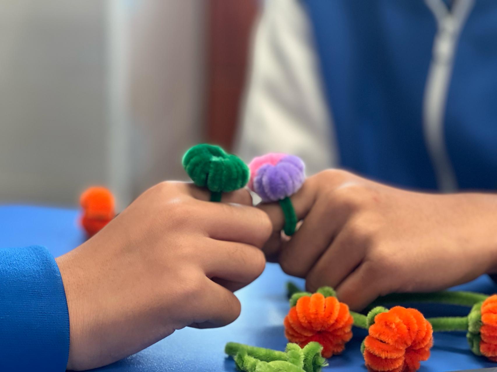 为畅通家校沟通渠道,凝聚教育合力,培养学生职业生涯规划意识,10月24日,湖南师大附中凌云中学2308中队组织开展了“扭棒成花,启职生涯”为主题的班队活动,邀请学生家长黎筱叶妈妈走进课堂,给同学们带来一节妙趣横生的扭扭棒手工课。