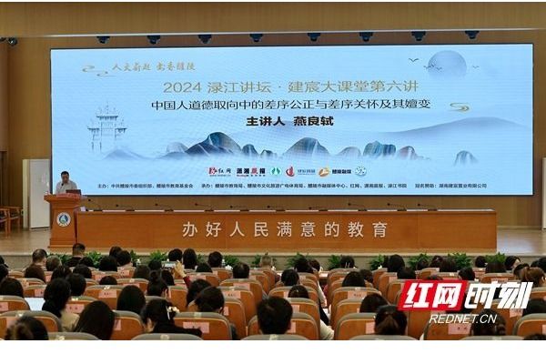 11月12日,“人文蔚起 书香醴陵”2024渌江讲坛·建宸大课堂第六讲在醴陵市渌江中学多媒体报告厅开讲,湖南师范大学心理学二级教授、博士生导师,澳门城市大学博士生导师燕良轼作客渌江讲坛,以《中国人道德取向中的差序公正与差序关怀及其嬗变》为主题进行授课,分享心得体会。