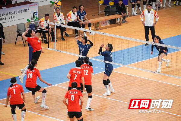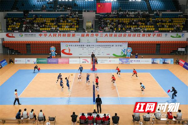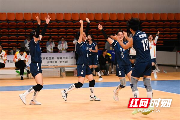 红网时刻新闻11月21日讯(记者 王淑娟 陈杰 通讯员 王子玮)湖南三大球女排队伍终于迎来了首场胜利。11月21日下午,第一届全国青少年三大球运动会女子排球项目小组赛最后一轮比赛继续在湖南师范大学江湾体育馆进行。其中,东道主湖南队迎战河南队。在现场800多名观众的助威声中,湖南女排以3:1(25:21/25:18/14:25/29:27)战胜对手,拿到了本届三大球运动会的首场胜利,展现了湖南运动员的无畏与拼搏。