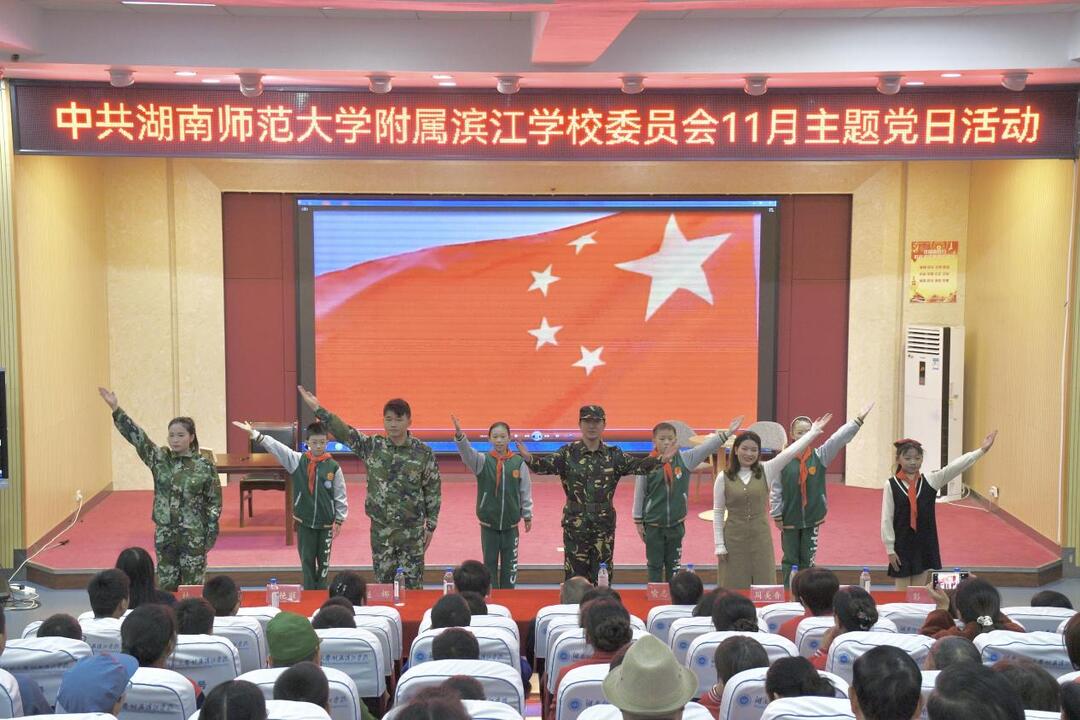 中共岳麓区枫林绿洲中心小学支部委员会带来舞蹈情景剧《党旗在心中》。节目以一面缓缓展开的党旗为序幕,通过细腻的动作和丰富的表情,生动展现了从党的光辉历程到新时代党员们的奋斗身影。