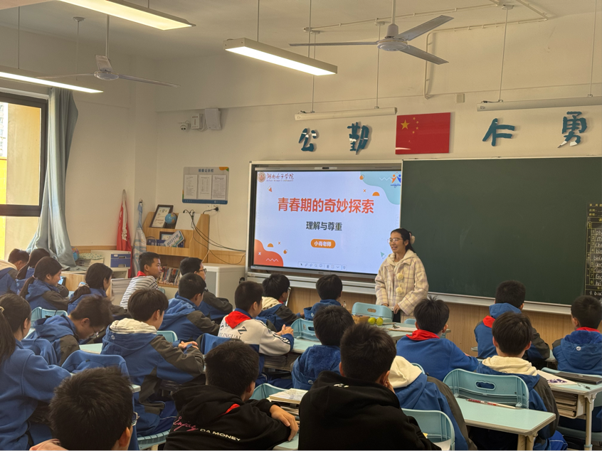 湖南教育新闻网讯(通讯员 蔡文静 龚倩怡)近日,湖南女子学院大学生创业实践项目简德教育团队受邀走进湖南师大附中双语实验学校,为初二J2311班的学生们带来了一堂别开生面的教育课程“青春期的奇妙探索:尊重与理解”。