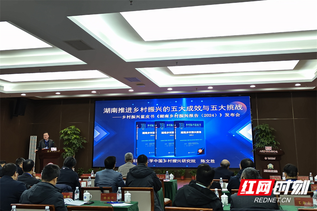 会上,湖南师范大学中国乡村振兴研究院院长、教授陈文胜发布了《乡村振兴蓝皮书:湖南乡村振兴报告(2024)》。