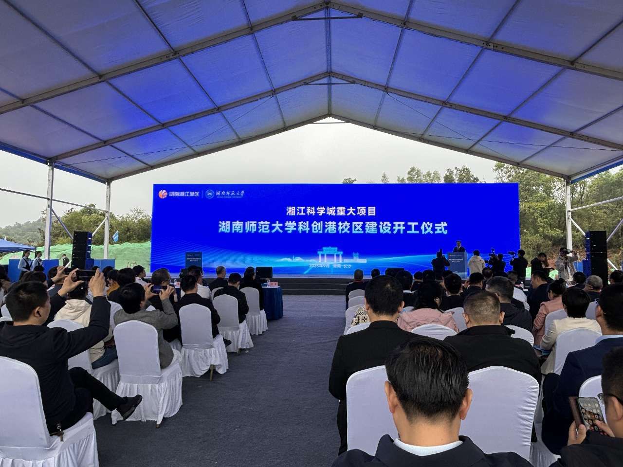 9月26日上午,湖南师范大学科创港校区建设开工仪式在湘江科学城举行。湖南省政协副主席李民宣布项目正式开工。