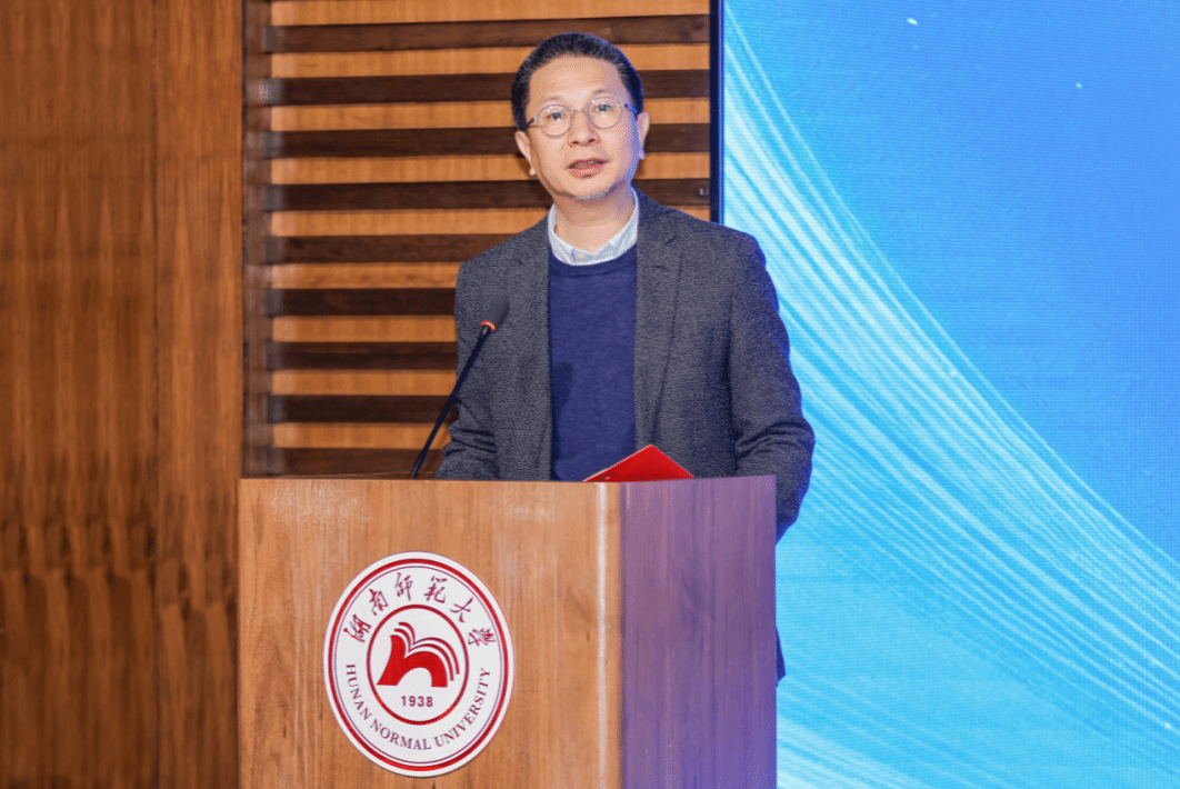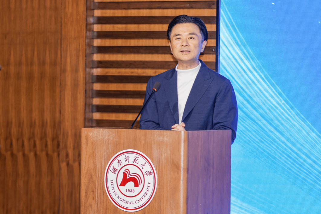 李少波代表湖南师范大学美术学院致辞。他表示,在艺术与科技深度融合的时代浪潮中,美术学院正以主动入局的姿态,全面拥抱AIGC技术带来的历史性机遇。作为国内知名的高等美术学府,学院不仅拥有完整的学科体系与创新人才梯队,更以前瞻视野重构人才培养模式和知识体系,将产业需求与时代趋势深度融入教学实践,致力于建设引领"AI+艺术"教育变革的创新高地。近年来,学院成果丰硕,不仅承担了国产大飞机信息符号系统、国产麒麟操作系统、国庆70周年庆典湖南彩车等国家级重要项目,还完成长沙地铁数字艺术馆、衡阳1944抗战纪念馆、江永女书博物馆等重要文旅设计项目,且与中国商飞、中南传媒、湖南博物院等企事业单位建立紧密的合作。他强调,万兴科技作为全球数字创意领域领军企业,此次双方合作既是技术与艺术、产业与教育的深度融合,也是学院对新时代艺术人才培养模式的深度探索。未来双方将通过共建AIGC研创中心,依托“教师进企业、专家进课堂”机制,联合开发前沿课程、推进项目研发、促进成果转化,构建开放协同的创新生态,期待产出更多创新作品与合作成果。
