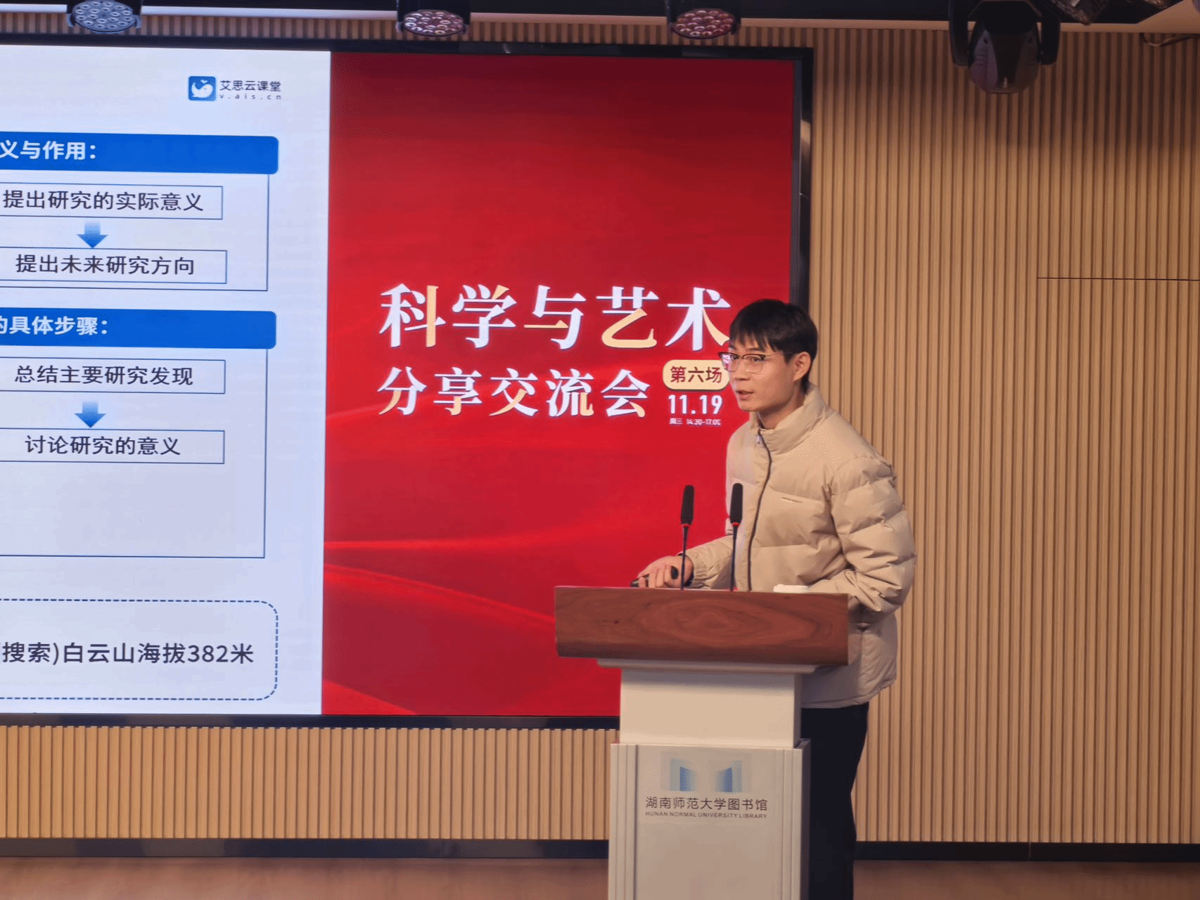 11月19日,由中国科学报社和广东省艾思信息化学术交流研究院共同主办的第六场科学可视化巡回主题展暨科学艺术分享交流会在湖南师范大学举办。