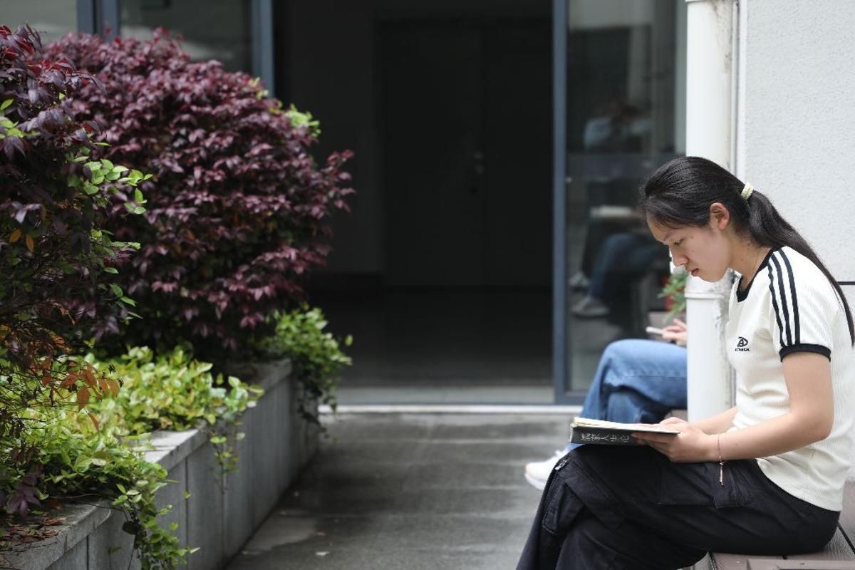 木兰路的梧桐新叶初展,长椅上的读者被树影轻轻包裹。阳光穿过叶片,在书面上洒下细碎的金斑。有人低声诵读,声音与鸟鸣交织;有人默然静读,目光在行句间游移。春日的草木生长,也在书页间留下了痕迹。