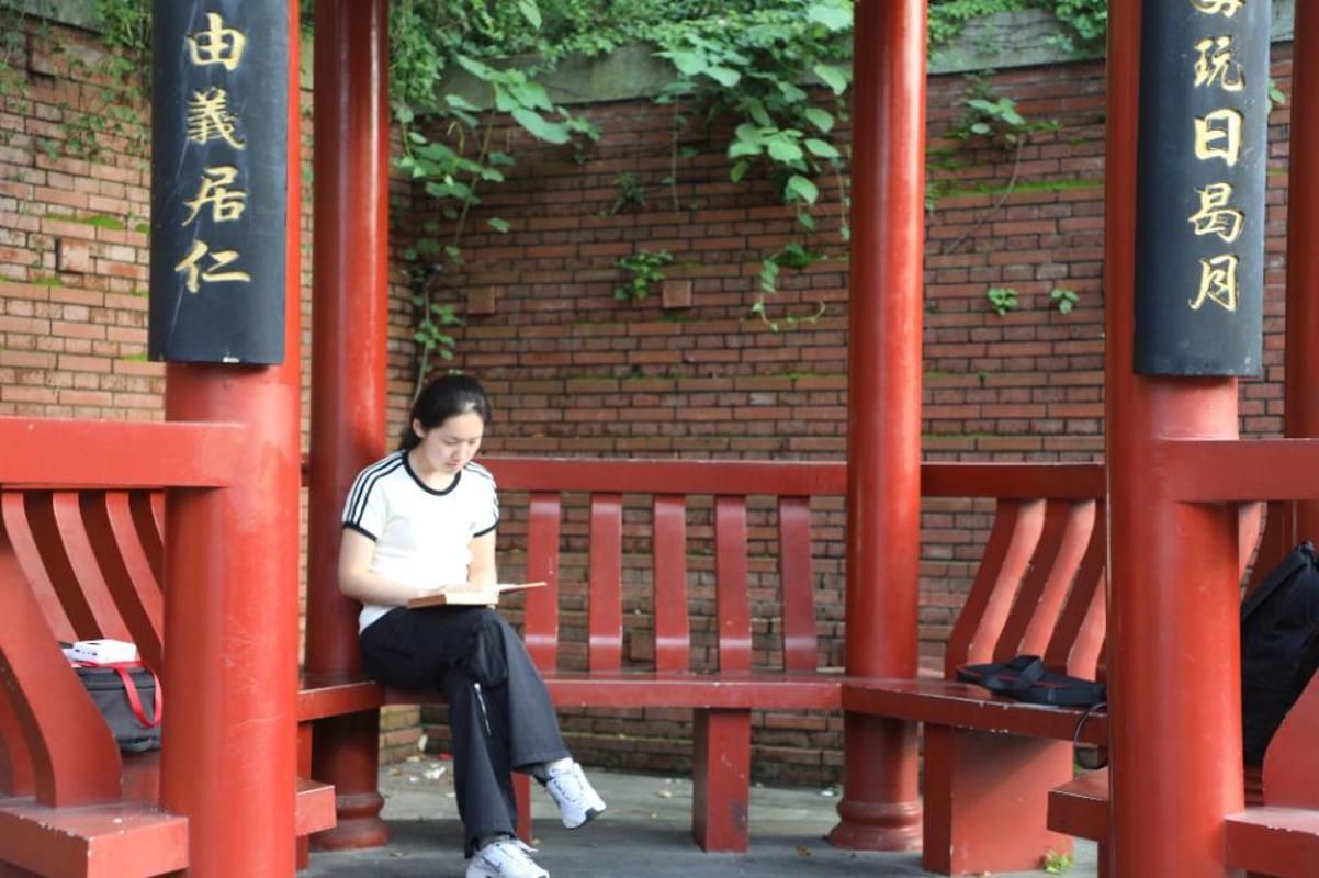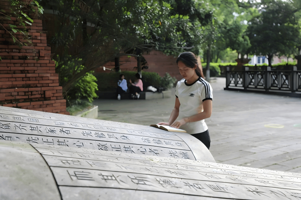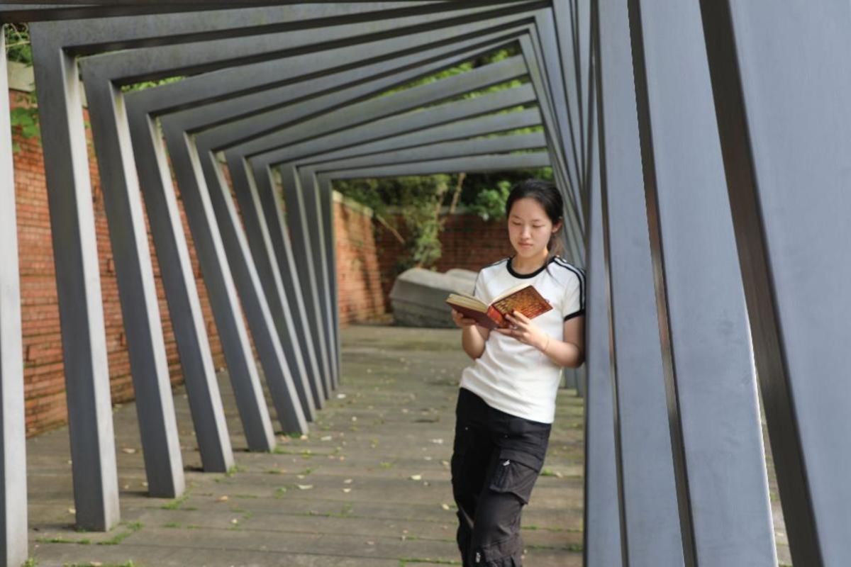 老校门的石柱旁,岳王亭的回廊里,教学楼的连廊台阶上——总有人捧书而坐。光沿着廊柱缓缓移动,把文字映得忽明忽暗。檐角的阴影落在书脊上,像是一道沉默的批注。历史与当下,在翻页的瞬间交汇。