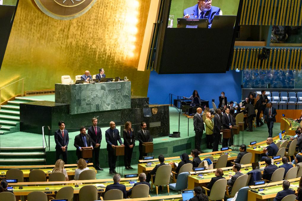 10月10日,在位于纽约的联合国总部,工作人员等待会员国代表投票选举联合国人权理事会成员。第78届联合国大会10日选举产生包括中国在内的15个联合国人权理事会成员,以接替将于今年年底结束任期的成员。新华社发(联合国供图/洛伊·费利佩摄)