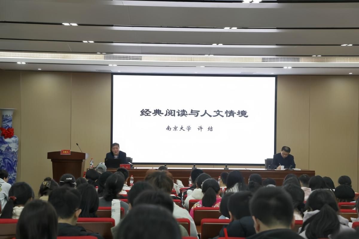 (记者 谭伟静 王佳丽 )11月27日晚,南京大学许结教授做客“至善讲堂”,为我校师生带来主题为“经典阅读与人文情境”的精彩讲座。文学院副院长吕双伟教授主持讲座。