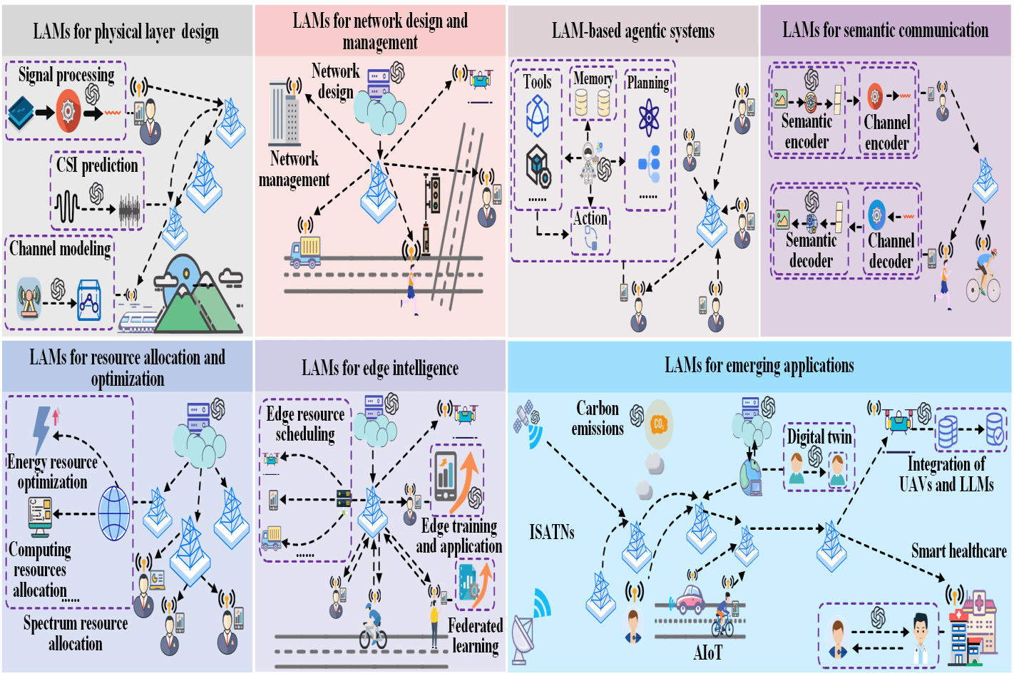 近年来,随着6G通信技术的蓬勃兴起,未来通信网络正加速向“泛在智能”与“万物智联”的方向演进。面对日益复杂的网络架构,具备强大跨模态理解、海量知识表达与复杂逻辑推理能力的人工智能大模型,已跃升为推动通信系统智能化转型的核心引擎。江沸菠副教授团队的该篇论文,立足国际学术前沿,系统梳理了大模型在未来通信网络中的理论基础、关键技术、核心应用场景及面临的严峻挑战,为构建新一代智能化6G通信网络提供了极具前瞻性的重要参考。