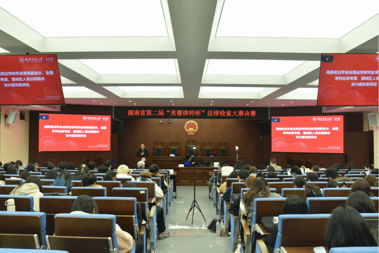 (通讯员 张雨祺 张玉立 李书晴)3月22日,湖南省第二届“芙蓉律师杯”法律检索大赛决赛在我校法学院举行。本次大赛由我校法学院、省法学会应用法学研究会及国际法研究会联合主办,湖南芙蓉律师事务所、北大法宝、LexisNexis协办。比赛吸引了全省19所高校、259支队伍、971名法学专业学生参赛,最终36支队伍晋级决赛。